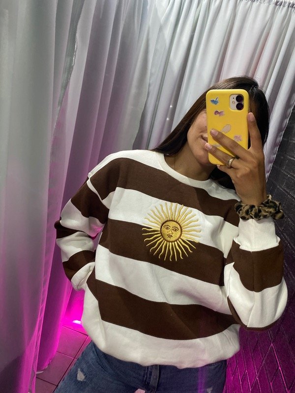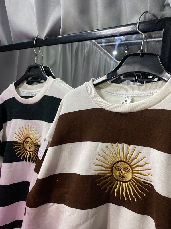 Buzos con el sol de mayo bordado🌞 la calidad es excelente, frizados, con rib en mangas cuello y cintura, tira de limpieza en la parte interna.