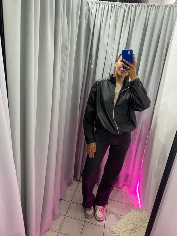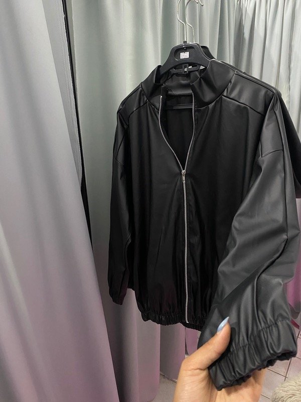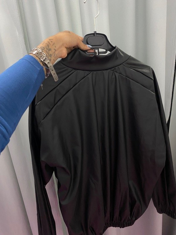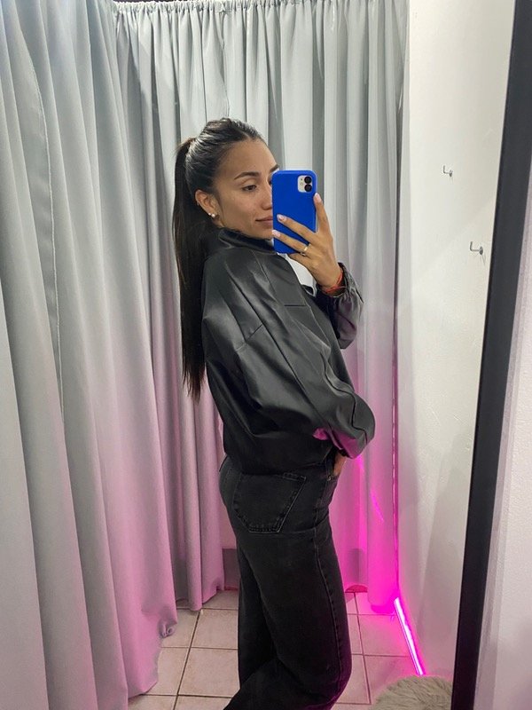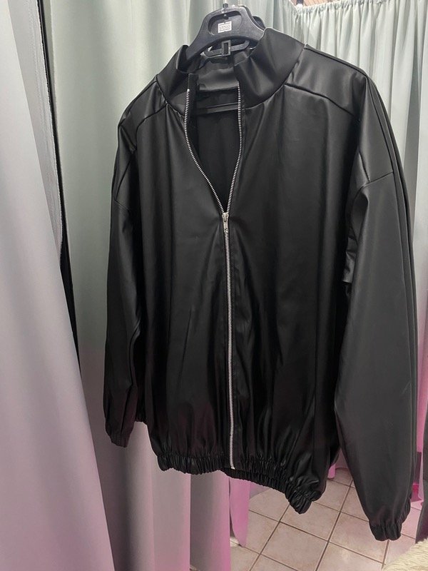 Campera bomber de ecocuero color negro. Es talle único pero es súper amplia