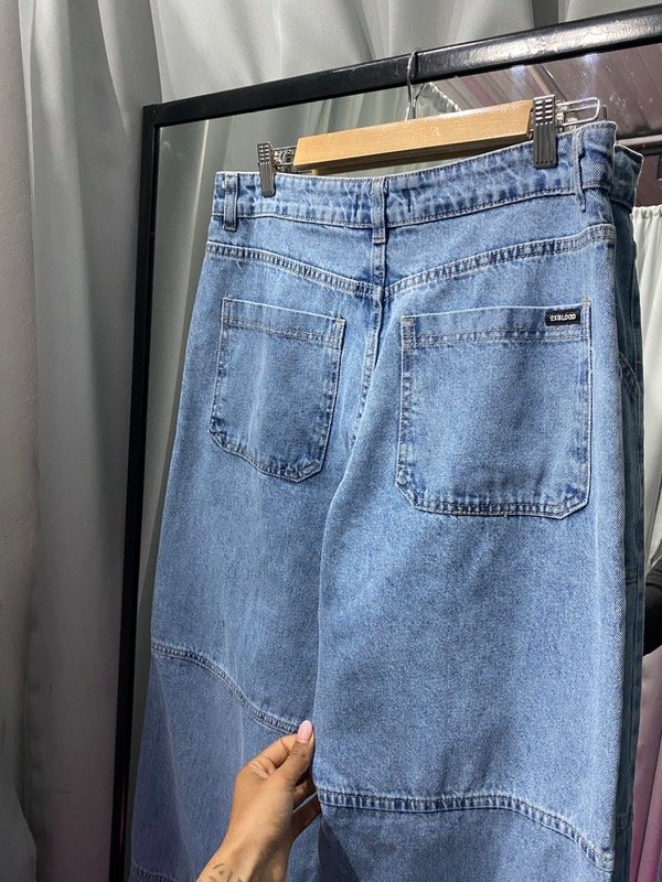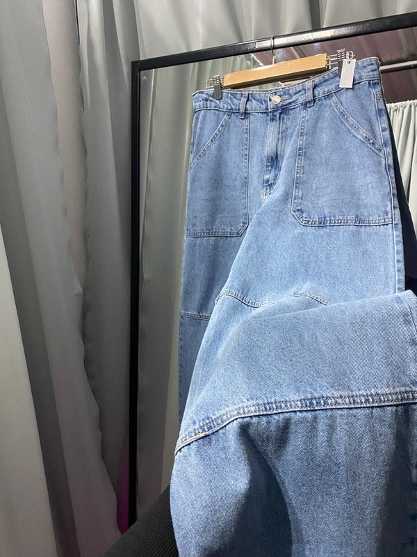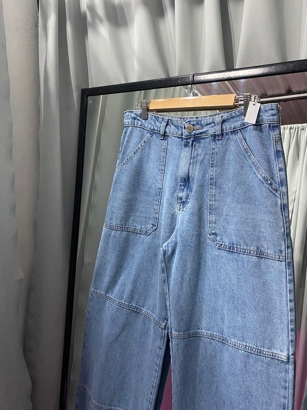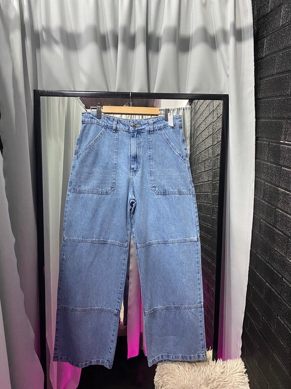 el estilo del jean es WIDE LEG, tiene detalles de recortes tanto en la parte delantera como trasera que le da un estilo urbano, como para todos los días✨