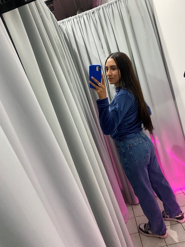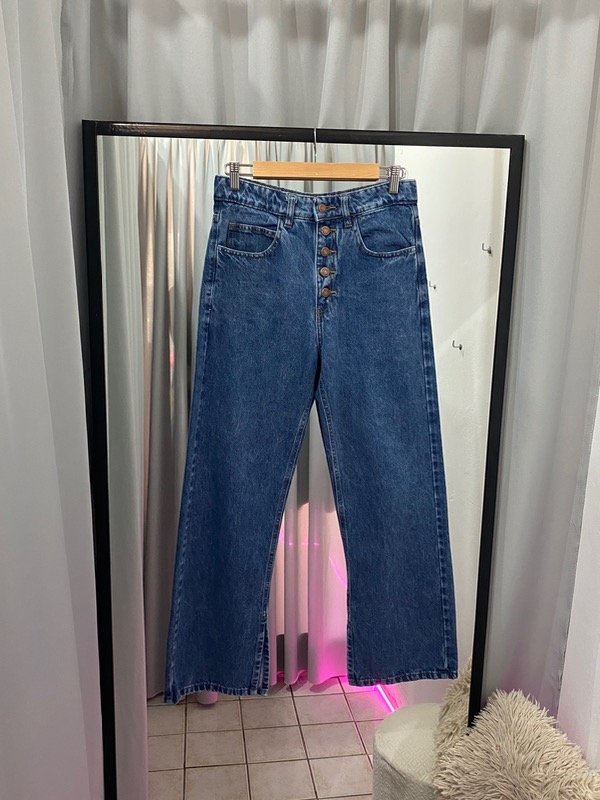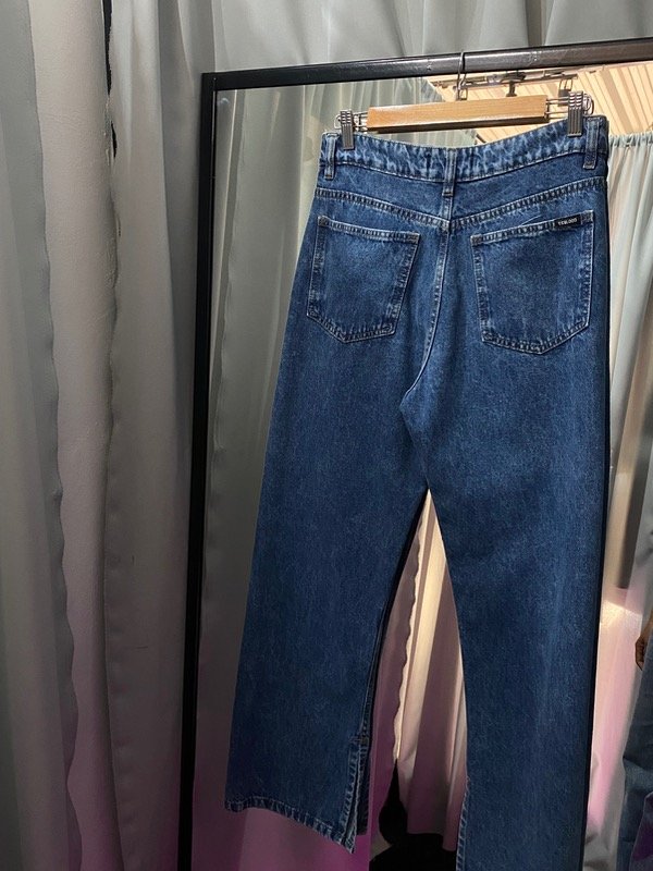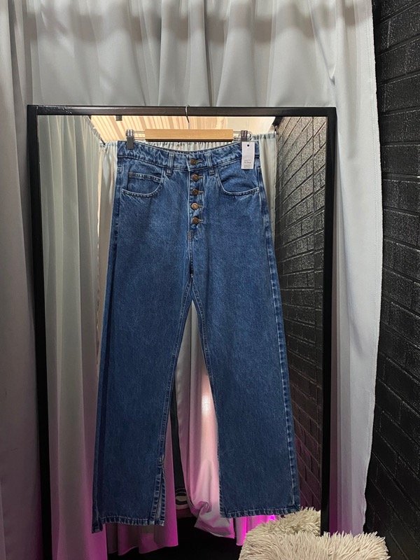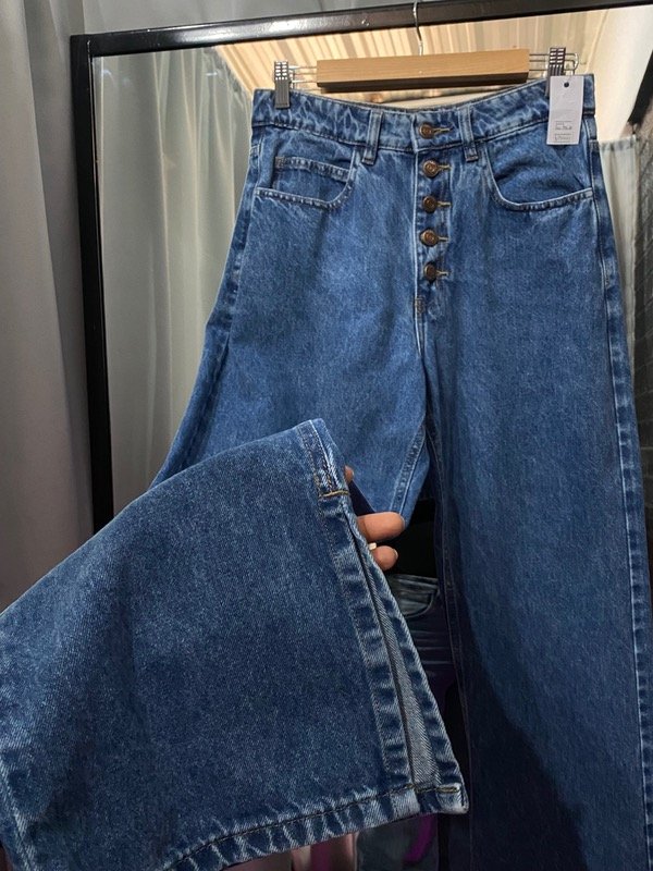 el jean es estilo WIDE LEG, cuenta con tajos en l parte inferior en el lado interno del pantalon, que genera un estilo super canchero💘