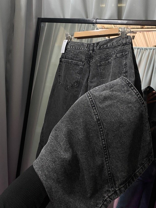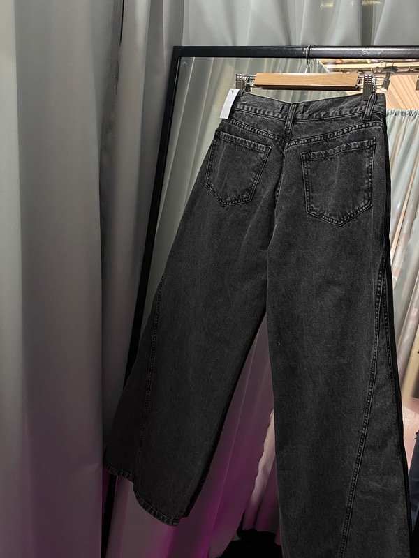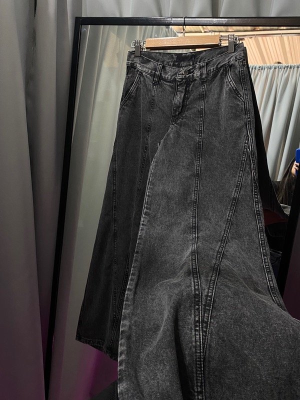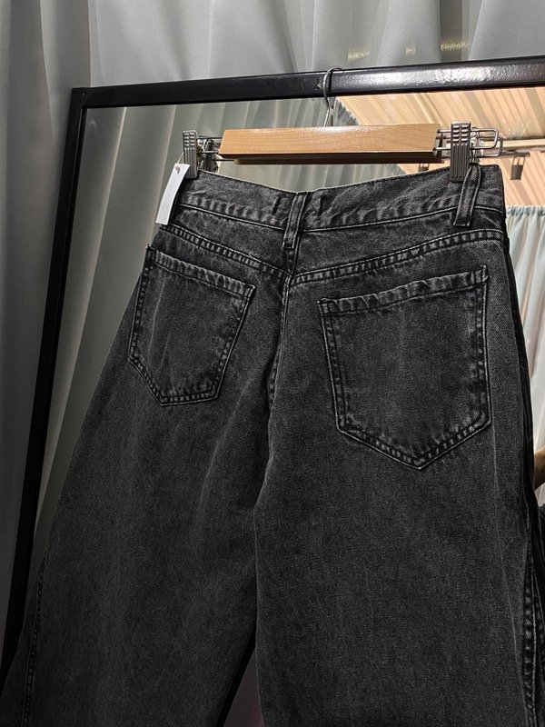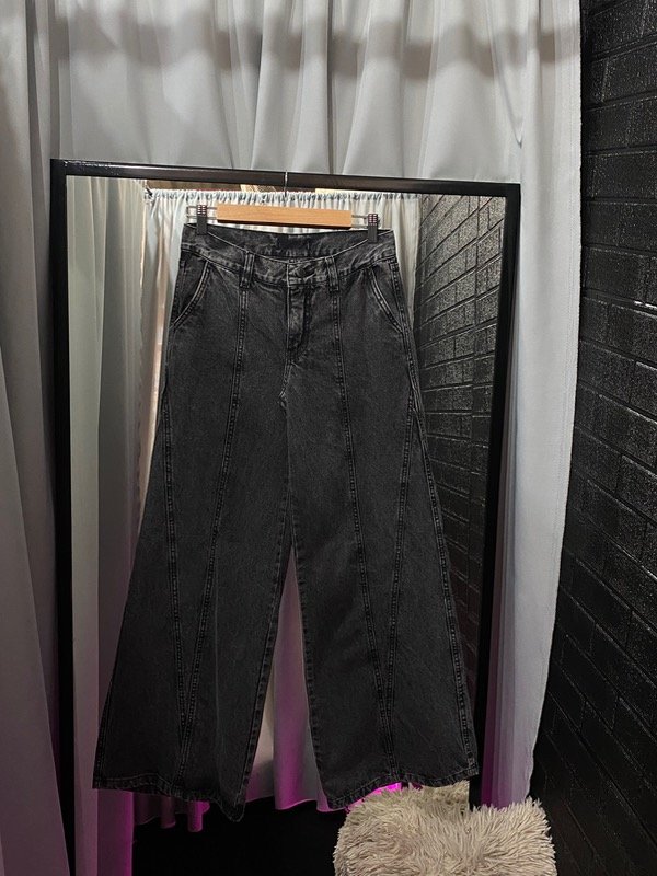 estilo WIDE LEG tiro bajo, la tela del jean es rígida pero aún así tiene un calce y una comodidad perfecta.