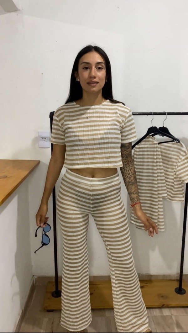 Conjunto playero, remera y pantalones. La caída, el calce y la elasticidad de la tela es una locura. Va desde un talle 1 a un 4 perfectamente