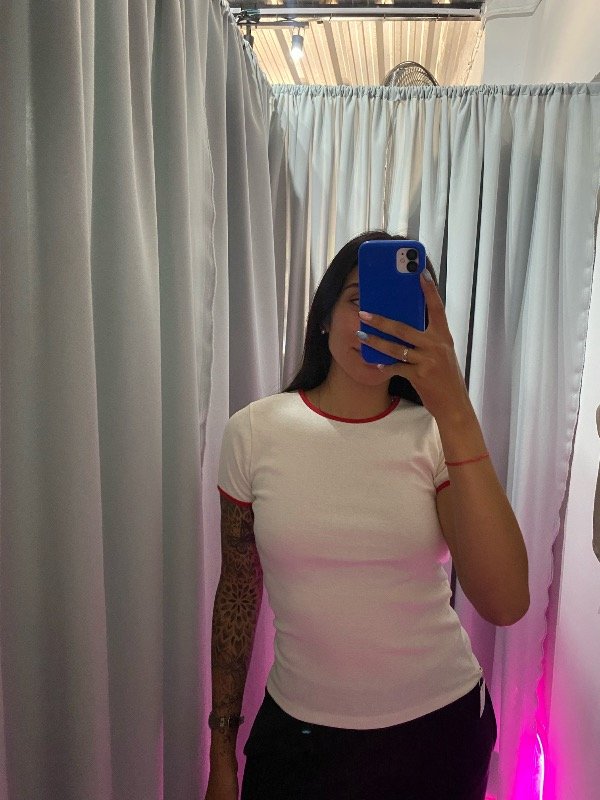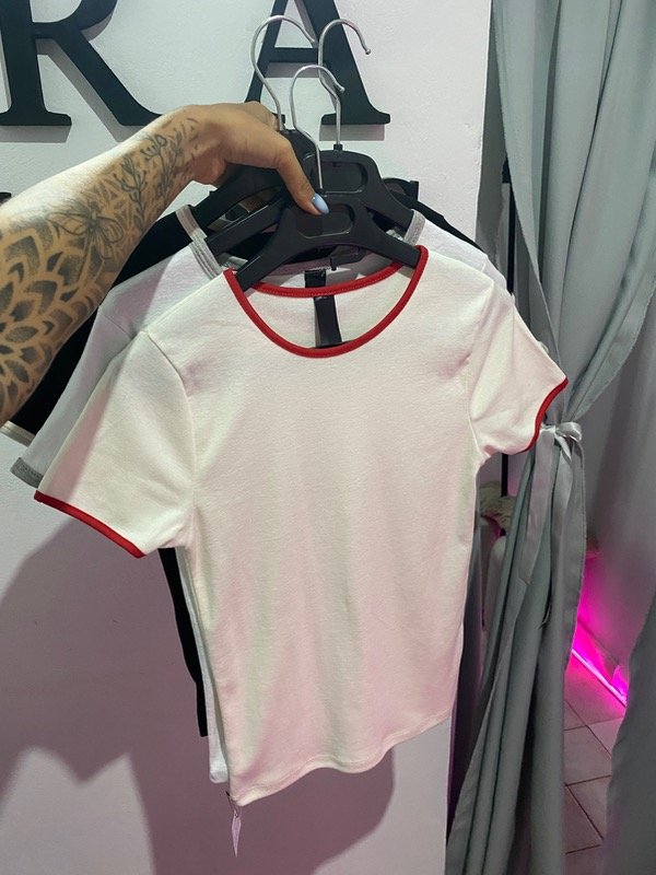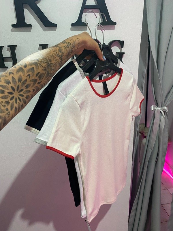 Remera de algodón larga, talle único. Cuenta con combinación de diferente color en los brazos y el cuello.